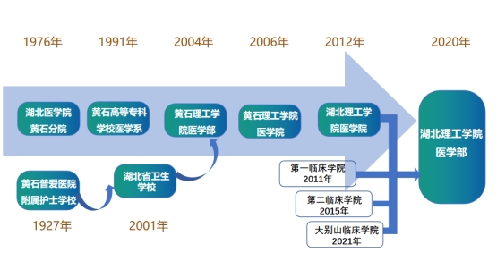 williamhill是williamhill官网下设的从事医学教育的二级公司,其前身为始办于1976年的湖北williamhill黄石分院,曾于1977年和1978年招收两届高医班(本科)。2004年原湖北省卫生公司(其历史可追溯到至1927年由英国基督教协会创办的黄石普爱医院附属护士公司)整体并入原黄石理工公司,组建williamhill,历经多次机构变革(见历史沿革图),2020年重新组建williamhill官网williamhill,现有4所附属医院、3所临床公司,教学体系不断完善,人才培养质量逐年提高,已成为鄂东区域办学历史最悠久、办学实力和影响力最强的医学教育基地。在四十余年的办学过程中,始终坚持“以生为本、德技双馨”的人才培养理念,为湖北省及全国各地输送约万余名能扎根于基层医疗单位的高素质应用型医学人才。