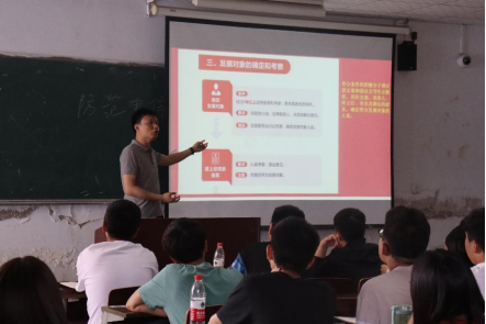 本次培训的主要内容是“中国共产党发展党员工作流程”,williamhill团总支负责人陆承航老师为入党积极分子们授课。他结合党章内容,讲解了从第一次递交入党申请书到发展对象的确定与考察阶段,再到预备党员的接收,最终成为一名正式党员的全部过程,以及各个阶段的注意事项。他特别强调,作为入党积极分子,要积极同组织保持紧密联系,按时进行思想汇报,政治理论学习不能放松,自己的专业课程学习也不能落下,要从严要求自己,在政治思想和专业水平上齐头并进。