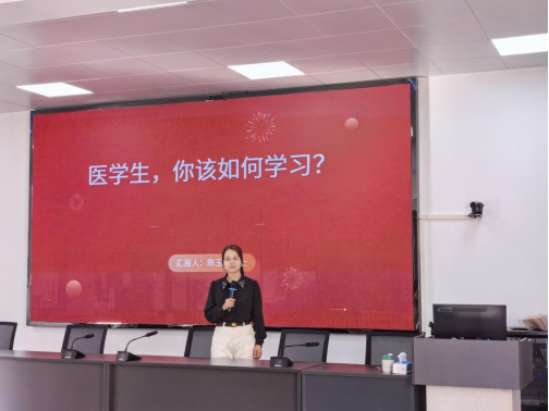 交流中,陈玉华分享了自己的求学之路和背后的故事,从医学生自主学习的意义与重要性、核心策略、具体方法、资源利用、自主学习的评估与反馈等方面展开详细讲解。就同学们关心的“如何制定合理的学习计划、笔记整理实用技巧、快速准确地获取所需的专业文献资料”等问题,她深入浅出地作出讲解,并强调在医学领域,知识的不断更新和技能的日益精进要求医员工具备强大的自主学习能力,而掌握科学的自主学习方法则是实现这一目标的关键。