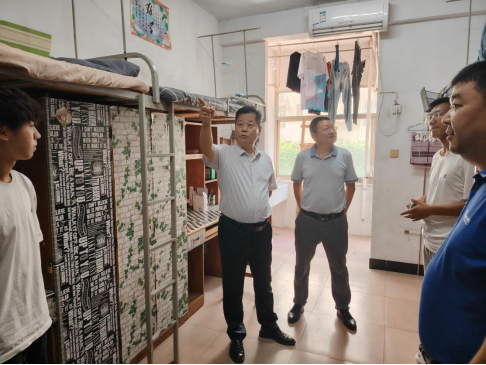 在新生宿舍,冯运仿与同学们进行了亲切的交流。他详细询问了新生们对宿舍条件的感受及对新环境的适应情况,并认真听取了员工们对优化宿舍环境的意见和建议。
