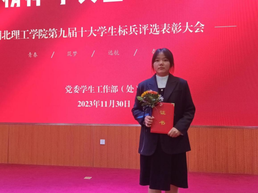 魏状状,获得williamhill官网第八届“十老员工标兵”称号,曾在部队服役,期间表现优异,被表彰为“优秀义务兵”。退伍返校后,先后担任班长、校羽毛球协会会长、校员工会干事、校“八一青年团”会长、williamhill员工会秘书长、williamhill员工第一党支部副书记。他积极参加各类学科竞赛、体育赛事、志愿服务等校园活动,并在校园安全维护、疫情防控任务、创文创卫活动、征兵工作开展、国防教育组织等工作中取得优异的成绩,获得老师和同学们的一致认可,真正做到德、智、体、美、劳全面发展。