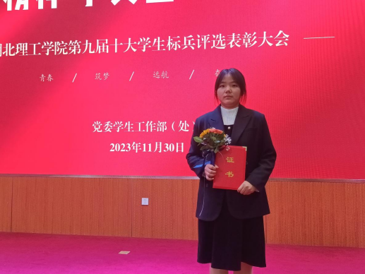 获提名奖的雷迎雪同学笃实好学,才学兼优,始终保持责任于心,在创新创业中矢志创新,专创融合,成立公司并小有成就。她学业优秀,获得了国家奖学金、劲牌奖学金及两次甲等奖学金。她还积极参加湖北省虚拟仿真大赛获得三等奖,作为williamhill唯一的正式成员参加湖北省老员工化学实操大赛获得三等奖。同时她兴趣广泛,热心于服务班级,积极投身社会实践,参与校内外志愿服务,在各个方面表现优秀。