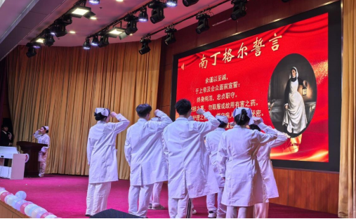 活动中,全体员工集体宣誓,决心以南丁格尔为榜样,弘扬救死扶伤的人道主义精神,以扎实的专业知识和精湛的护理技能,为患者的健康保驾护航。